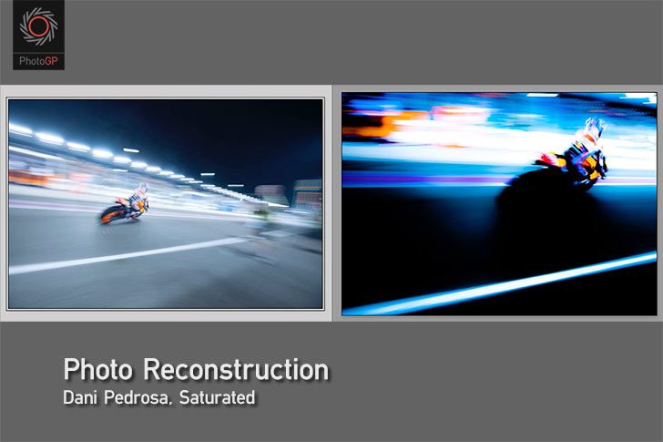 This video is another Photo Reconstruction, and this time the subject is an image of Dani Pedrosa leaving the Repsol Honda pit box at Losail in 2015. The final image has lots of contrast and saturation in the style of Pete Turner.